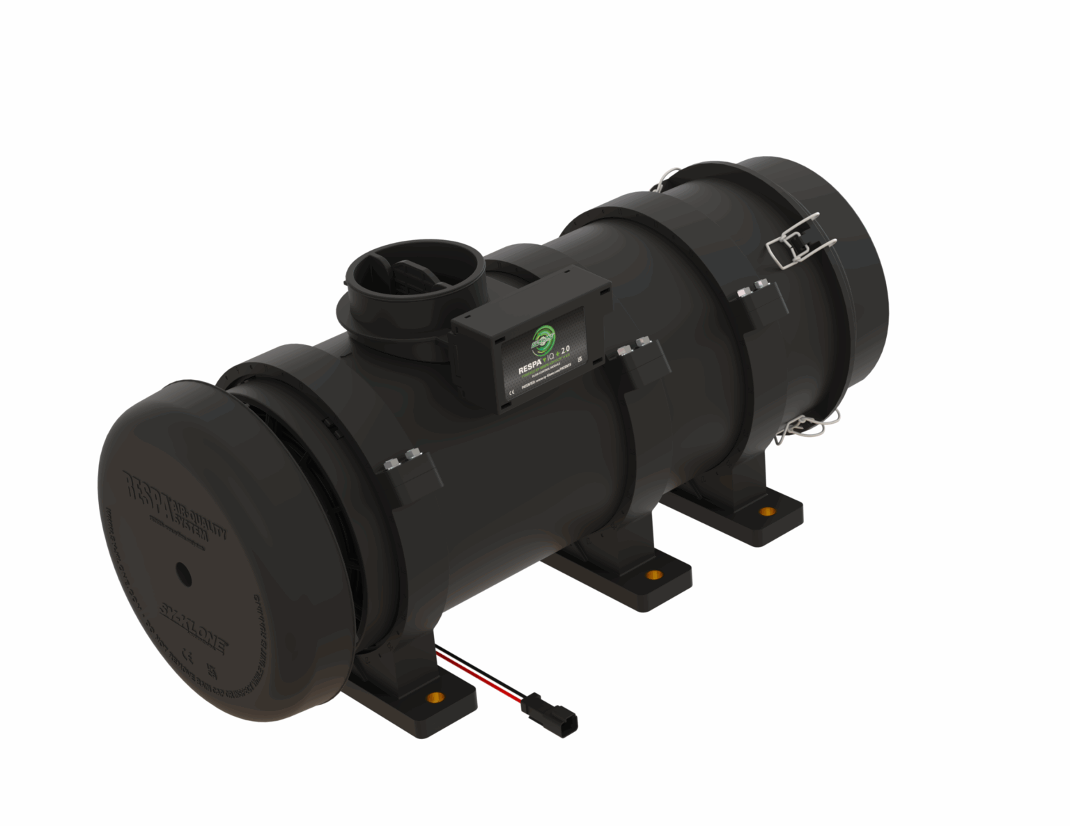 The RESPA®-CF2 is the most advanced cab and enclosure Air Quality System available, delivering a powered precleaner, filter, and pressurizer in one compact, customizable unit. This innovation from Sy-Klone offers the highest quality of filtration and pressurization at the lowest costs. The cost-effective system extends the HVAC system maintenance intervals while dramatically extending filter life—which saves on filter and labor costs to the user. The powered precleaning technology allows cabs/enclosures to sustain positive pressurization, thus keeping particulate out.