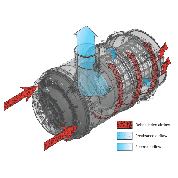 XLR maximizes precleaner efficiency across the entire engine airflow range, as well as incorporates a high efficiency prefilter. It is a fantastic solution for extreme environments.